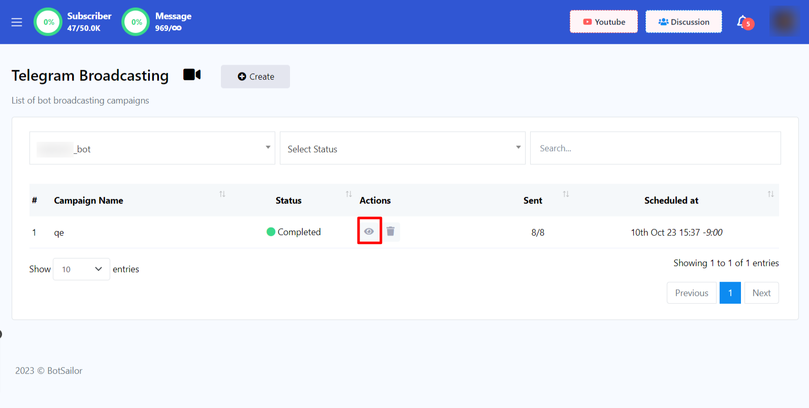 3. Select a bot to send broadcast message from dropdown menu.